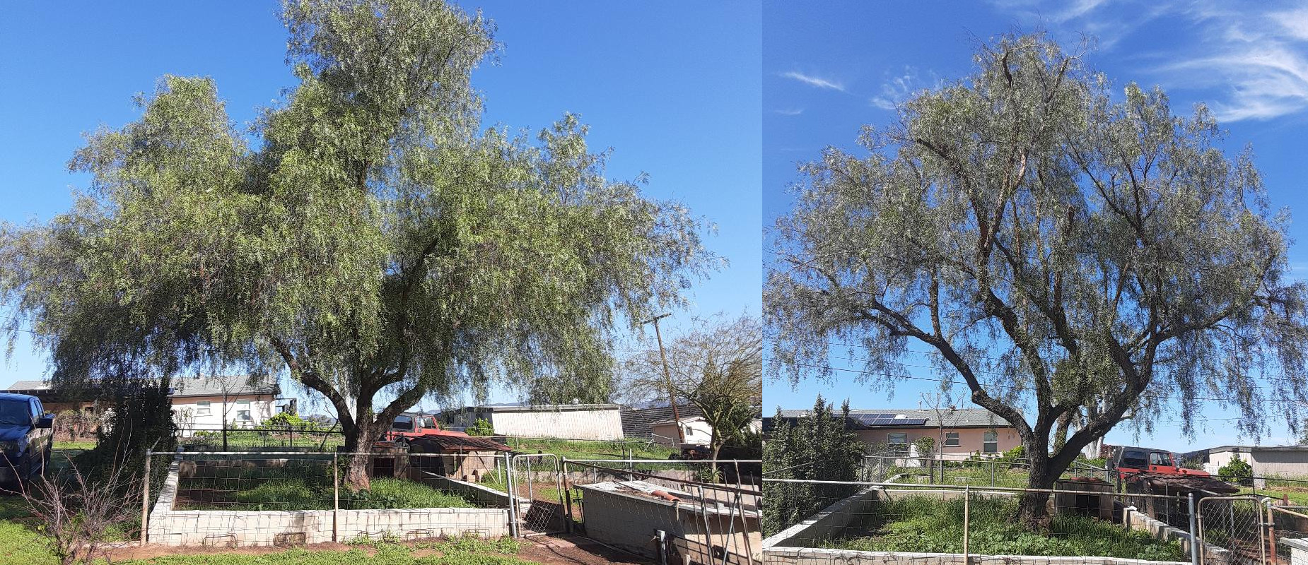 These days trees are needing to be more and more under control. They get too wild, and get out of their bounds. That’s where we come in, to prune them back off the structures, to give relief and sometimes for fire prevention.